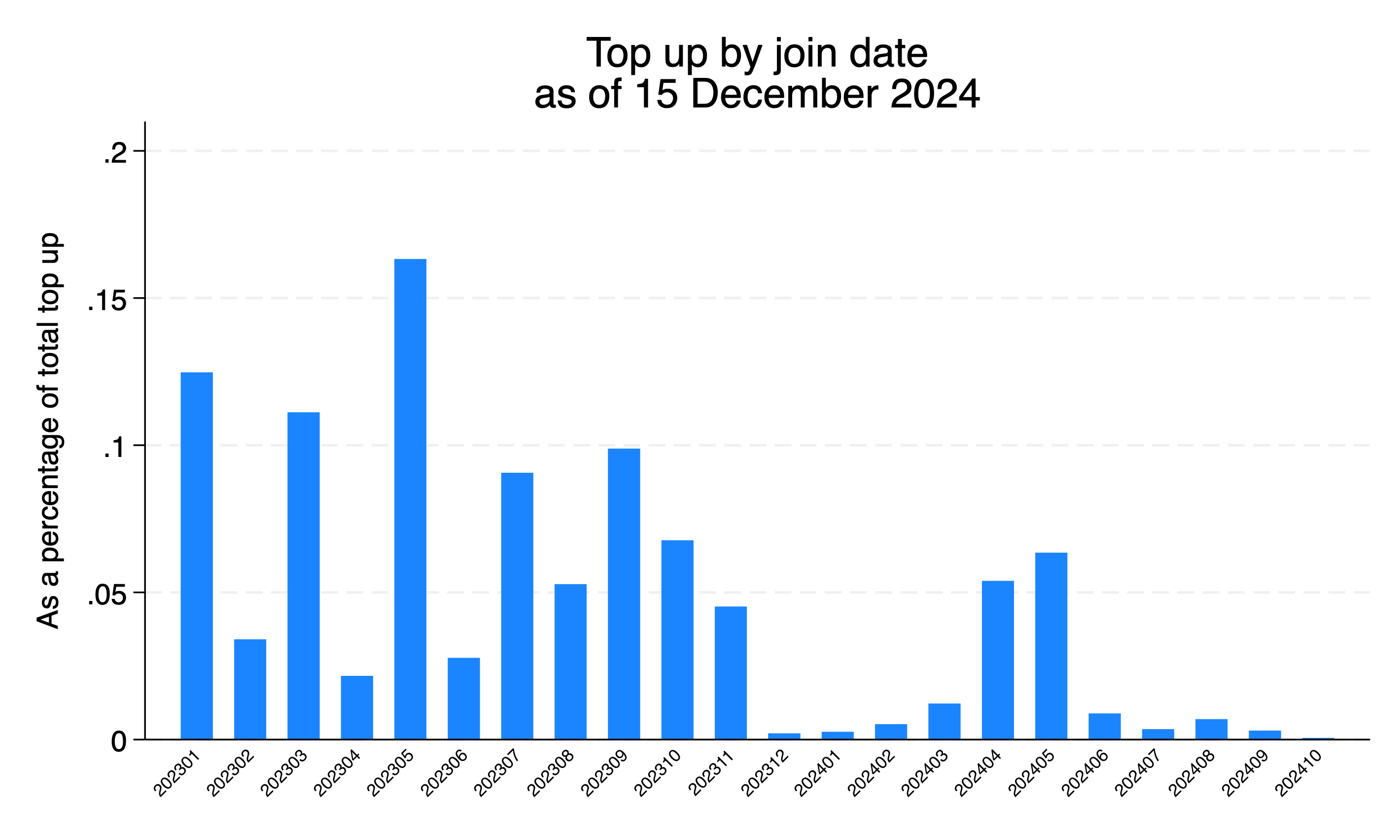 We are happy that the number of people who trust us and the extent of trust continue to grow. We continue to receive new AUM (asset under management) month by month, as shown in figure 1. Despite slowing growth in new AUM in the second half of 2024, the amount of top up from our existing client overshadows the slowdown in new AUM (see figure 2). To us, top up from existing clients is a testimony of the intensity of trust and satisfaction, so we are even more happy to receive them.
