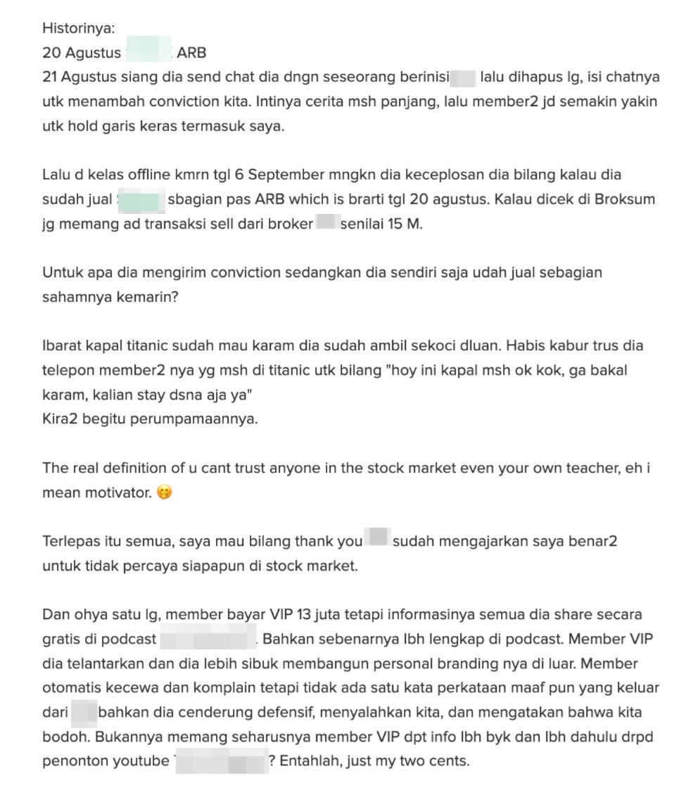 For context, here’s a public post from an investor describing their experience: https://stockbit.com/post/20826313 .