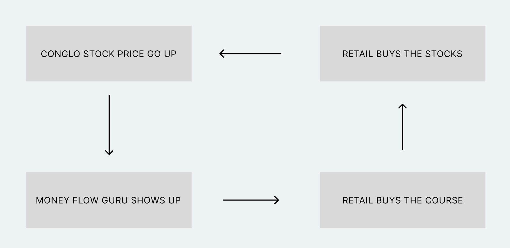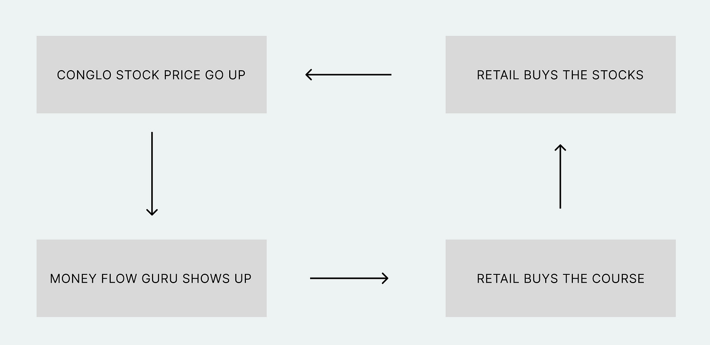 From the flowchart above, it is quite clear that “Konglo stocks” can be replaced with any other stocks such as digital bank stocks, sub-prime mortgages, etc.