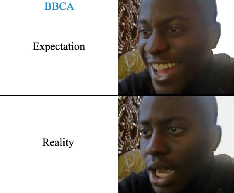 What hurt BBCA hodlers was the price they paid 1 - 2 years ago and the expectations embedded in that price.